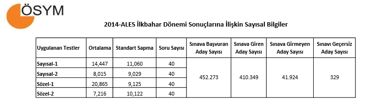 2014 ALES İlkbahar Dönemi Sınavına kaç kişi katıldı
