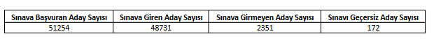 Sınav Sonuçlarına İlişkin Sayısal Bilgiler