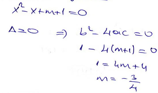 x2 – x + m + 1 = 0 denkleminin çakışık iki kökünün olması için m nin kaç olması gerektiğini bulunuz.