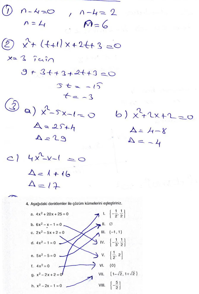 3. Aşağıdaki denklemlerin diskriminantlarını bulunuz.