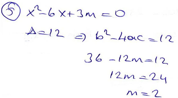 5. x2 – 6x + 3 m = 0 denkleminin diskriminantı 12 olduğuna göre m kaçtır?