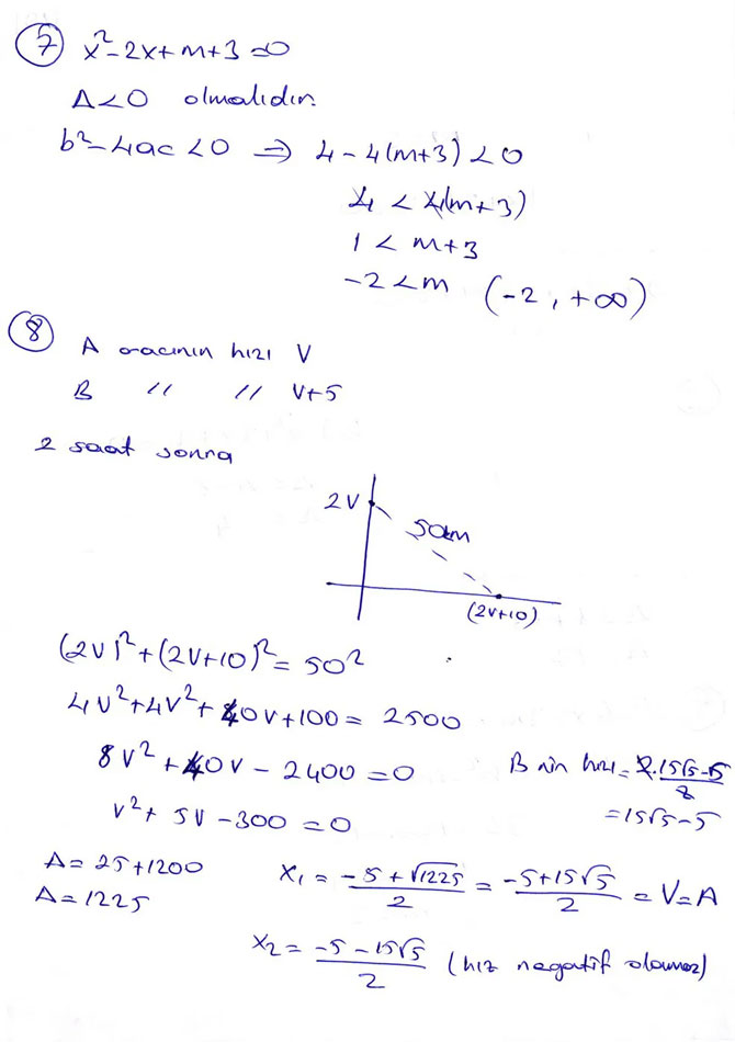7. x2 – 2x + m + 3 = 0 denkleminin gerçek kökleri olmadığına göre m nin değer aralığını bulunuz.
