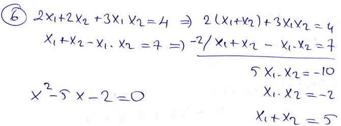 6. Kökleri arasında 2x1 + 2x2 + 3x1 . x2 = 4 ve x1 + x2 – x1 . x2 = 7 bağıntıları olan ikinci dereceden denklemi yazınız.