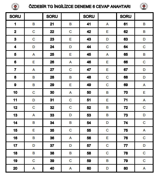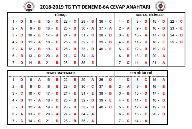 TYT Denemesi A Kitapçığı Cevap Anahtarı