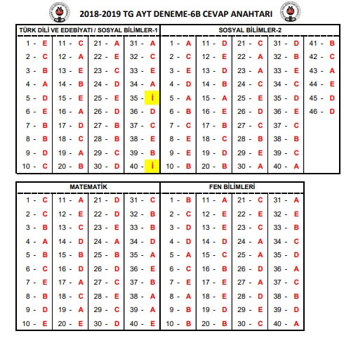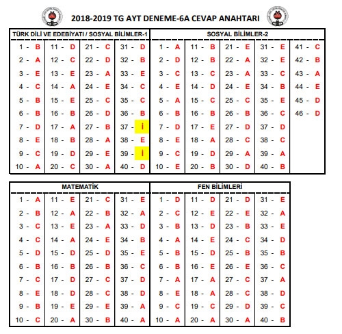 AYT Denemesi A Kitapçığı Cevap Anahtarı