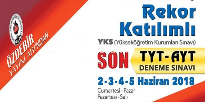 Tüm Özel ve Resmi Kurumların katılabileceği (TYT+AYT) Son YKS Deneme 2-3-4-5 Haziran 2018 tarihinde uygulandı.