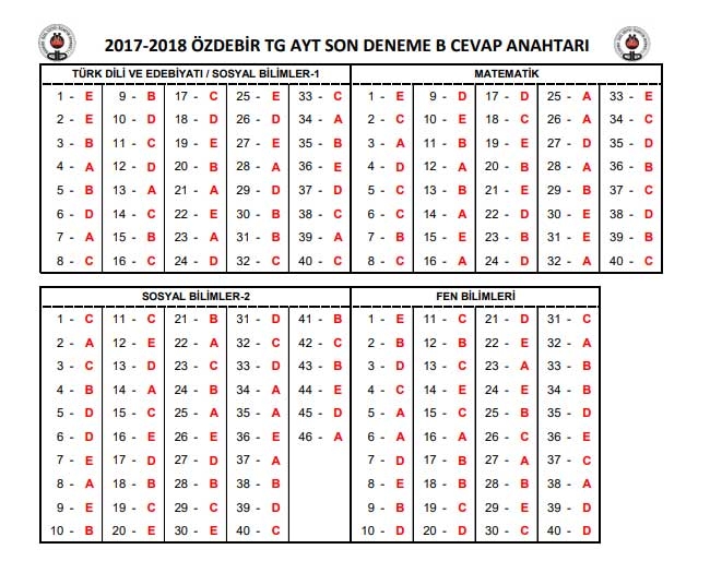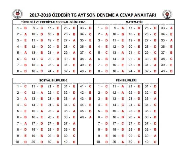 AYT Kitapçığı Cevap Anahtarı sonraki sayfadan devam ediyor.