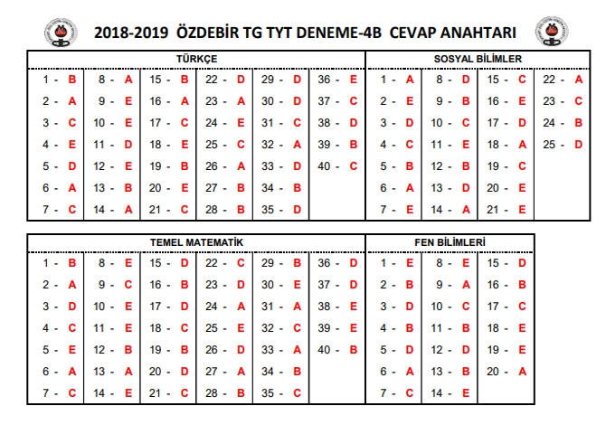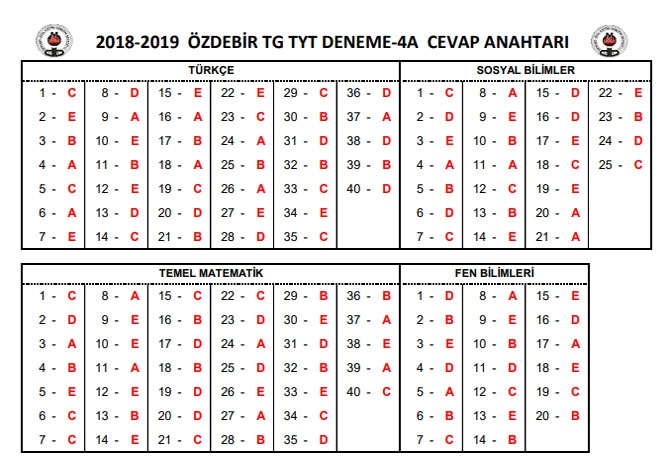 22-23-24 Mart 2019 Özdebir 4. YKS Deneme Sınavı Cevap Anahtarı ne zaman açıklanacak?