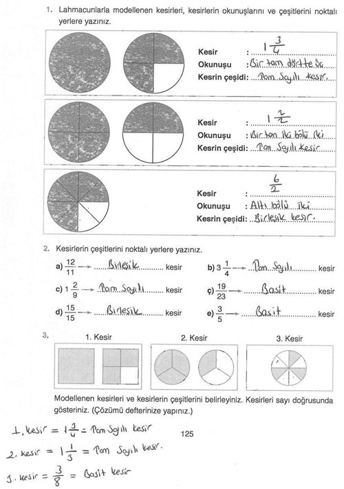 1. Lahmacunlarla modellenen kesirleri, kesirlerin okunuşlarını ve çeşitlerini noktalı yerlere yazınız.