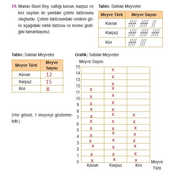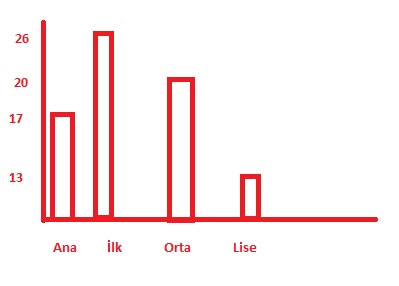 13. Bir bölgedeki okul türleri ve sayıları ile yandaki çetele tablosu oluşturulmuştur. Çetele tablosundaki verilerle bir sütun grafiği oluşturunuz