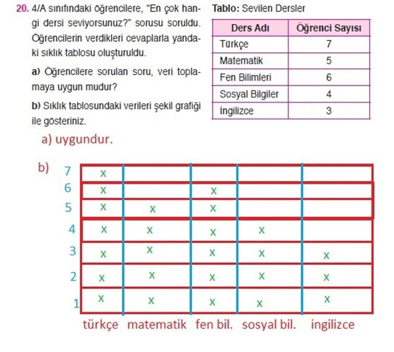 b) Sıklık tablosundaki verileri şekil grafiği ile gösteriniz.