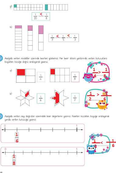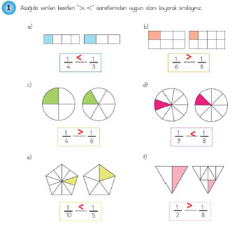 1- Aşağıda verilen kesirleri ‘’ <, > ‘’ işaretlerinden uygun olanı koyarak sıralayınız.