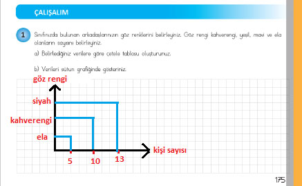 1- Sınıfınızda bulunan arkadaşlarınızın göz renklerini belirleyiniz. Göz rengi kahverengi, yeşil, mavi ve ela olanların sayısını belirleyiniz.