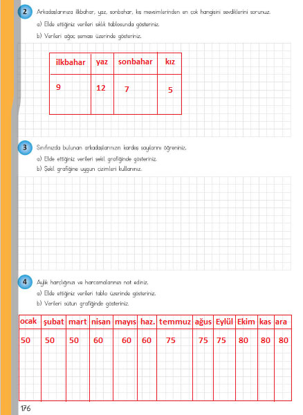 3- Sınıfınızda bulunan arkadaşlarınızın kardeş sayılarını öğreniniz.