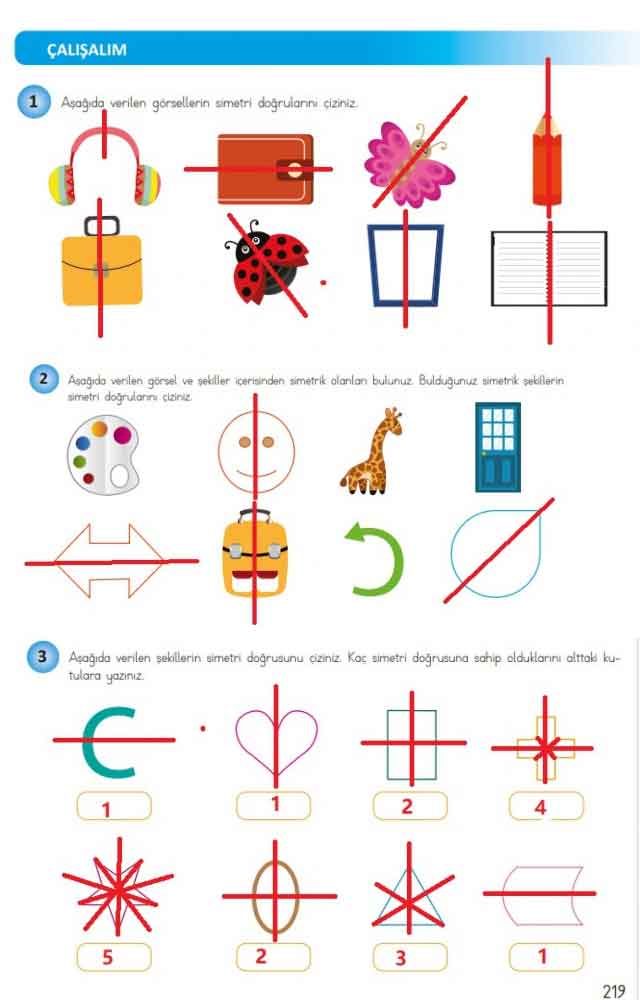 1- Aşağıda verilen görsellerin simetri doğrularını çiziniz.