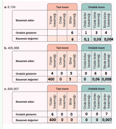 2. Aşağıdaki tabloların boş yerlerini, verilen ondalık gösterimlere göre tamamlayınız.