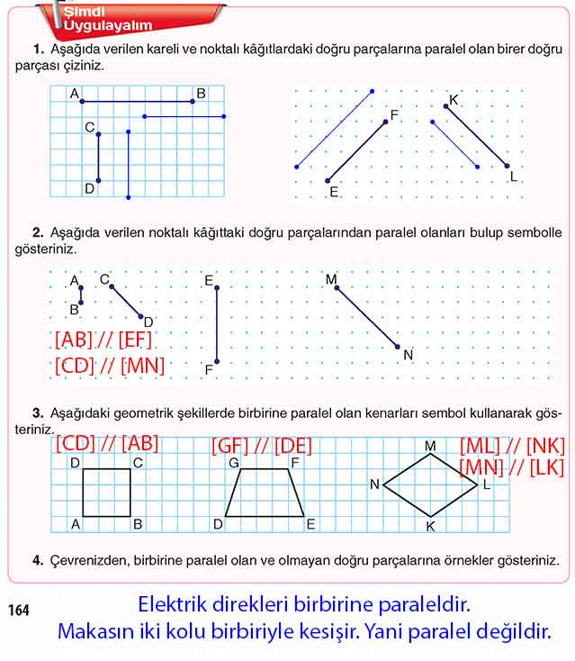 1. Aşağıda verilen kareli ve noktalı kâğıtlardaki doğru parçalarına paralel olan birer doğru parçası çiziniz.