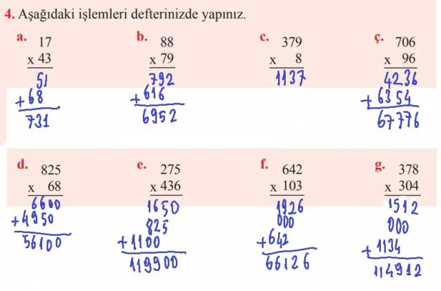 4. Aşağıdaki işlemleri defterinizde yapınız.