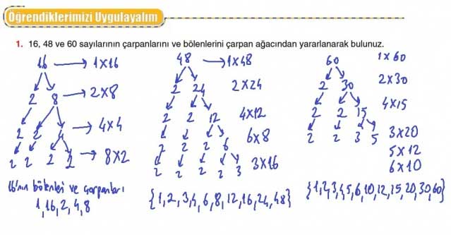 1. 16, 48 ve 60 sayılarının çarpanlarını ve bölenlerini çarpan ağacından yararlanarak bulunuz.