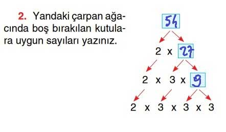 2. Yandaki çarpan ağacında boş bırakılan kutulara uygun sayıları yazınız.