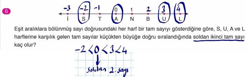 5. Öğrencilerin ifadelerinde belirttiği tam sayıları yazınız ve karşılaştırınız