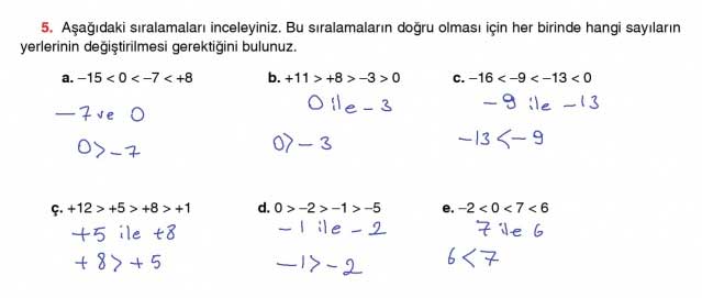 5. Aşağıdaki sıralamaları inceleyiniz. Bu sıralamaların doğru olması için her birinde hangi sayıların yerlerinin değiştirilmesi gerektiğini bulunuz.