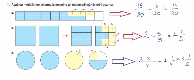 1. Aşağıda modellenen çıkarma işlemlerine ait matematik cümlelerini yazınız.