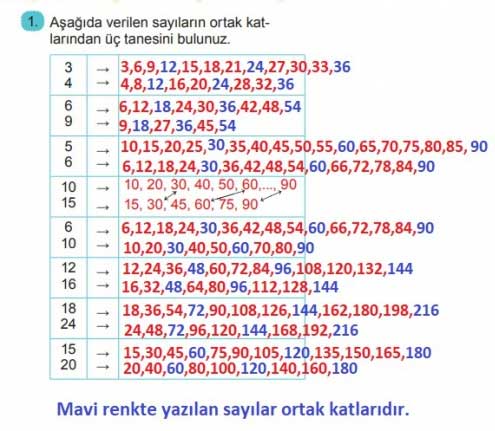1- Aşağıda verilen sayıların ortak katlarından üç tanesini bulunuz.