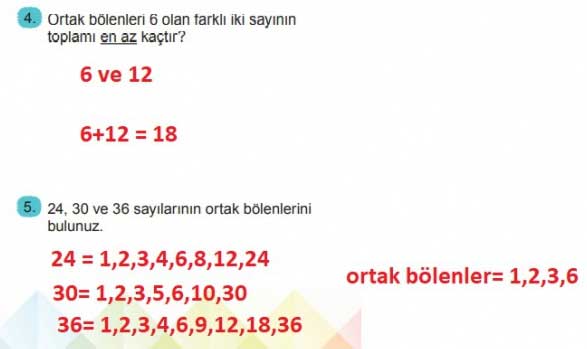 5- 24, 30 ve 36 sayılarının ortak bölenlerini bulunuz.