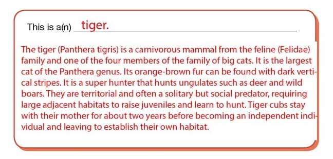 with the pictures. (Cümleleri okuyun ve hayvanların isimlerini yazın. Sonra onları eşleştirin resimlerle.)