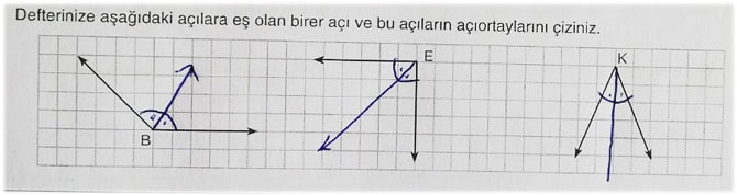 • Aşağıda verilen açıları adlandırınız. Açıölçer kullanarak açıların ölçülerini bulunuz.