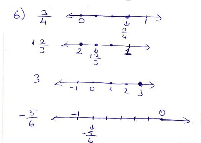 6. 3/4, 1 tam 2/3, 3 ve -5/6 rasyonel sayılarını sayı doğrusu üzerinde gösteriniz.