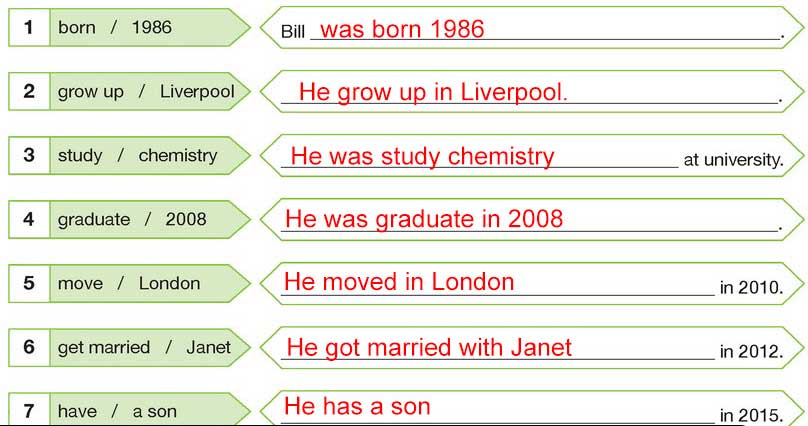 2 Write Bill's biography using the keywords given below (Aşağıda verilen anahtar kelimeleri kullanarak Bill'in biyografisini yazın)