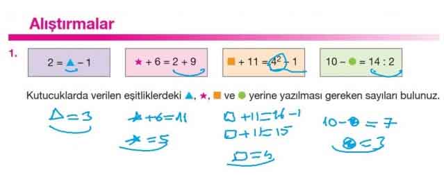 1. Kutucuklarda verilen eşitliklerdeki s, _, n ve l yerine yazılması gereken sayıları bulunuz.