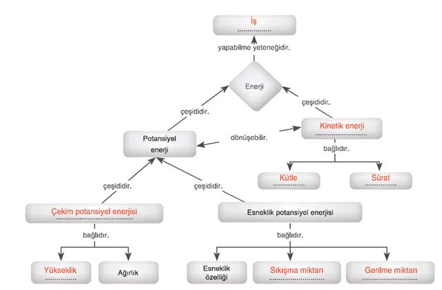 B) Aşağıdaki kavram haritasında noktalı yerleri kutucuklardaki kavramlardan uygun olanlarıyla tamamlayınız.