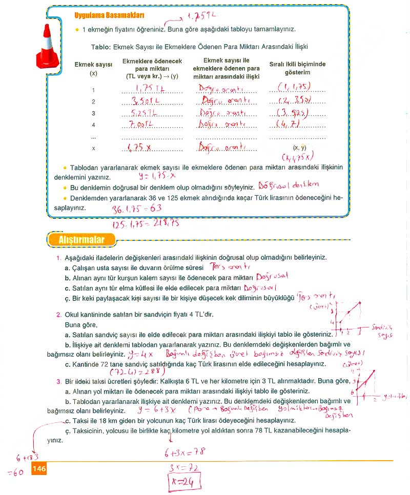 a. Alınan yol miktarı ile ödenecek para miktarı arasındaki ilişkiyi tablo ile gösteriniz.