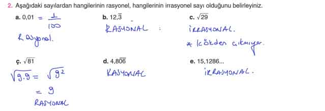2. Aşağıdaki sayılardan hangilerinin rasyonel, hangilerinin irrasyonel sayı olduğunu belirleyiniz.
