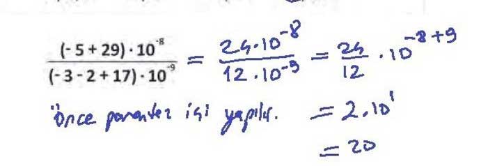 19. işleminin sonucu aşağıdakilerden hangisidir?