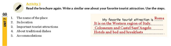 Read the brochure again. Write a similar one about your favorite tourist attraction. Use the steps. (Broşürü tekrar okuyun. En sevdiğiniz turistik yer hakkında benzer bir tane yazın. Adımları kullanın.)