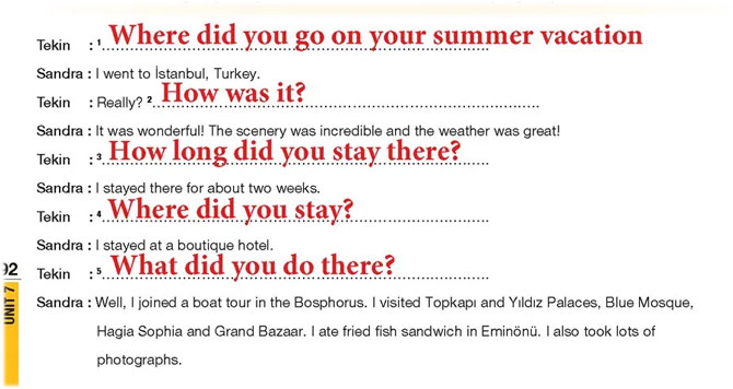 8. Sınıf Meb İngilizce 7. Ünite Tourism Cevapları