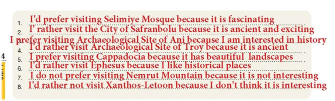 Here are eight of the World Heritages in Turkey. Look at the map and the pictures. Write your preferences. State your personal opinions and make simple comparisons (İşte Türkiye'deki Dünya Miraslarından sekiz tanesi. Haritaya ve resimlere bakın. Tercihlerinizi yazın. Kişisel fikirlerinizi belirtin ve basit karşılaştırmalar yapın)