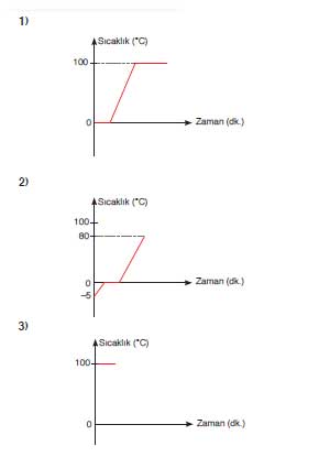 1) 0 °C’taki 20 g buzun, 100 °C’ta 20 g gaz hâle geçene kadar oluşan sıcaklık-zaman grafiğinin nasıl olabileceğini aşağıda verilen kareli alana çiziniz.