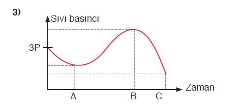 3) Akvaryumun içerisinde ilerleyen bir balığın akvaryum içerisinde izlediği yol kesikli çizgiler ile gösterilmiştir. Başlangıçta balığa etki eden basınç 3P olduğuna göre; A, B ve C noktalarında balığa etki eden su basıncının değişim grafiğini aşağıdaki alana çiziniz.