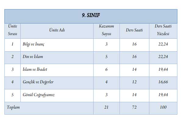 9. Sınıf Din Kültürü konuları ve müfredatı
