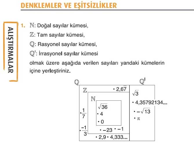olmak üzere aşağıda verilen sayıları yandaki kümelerin içine yerleştiriniz.