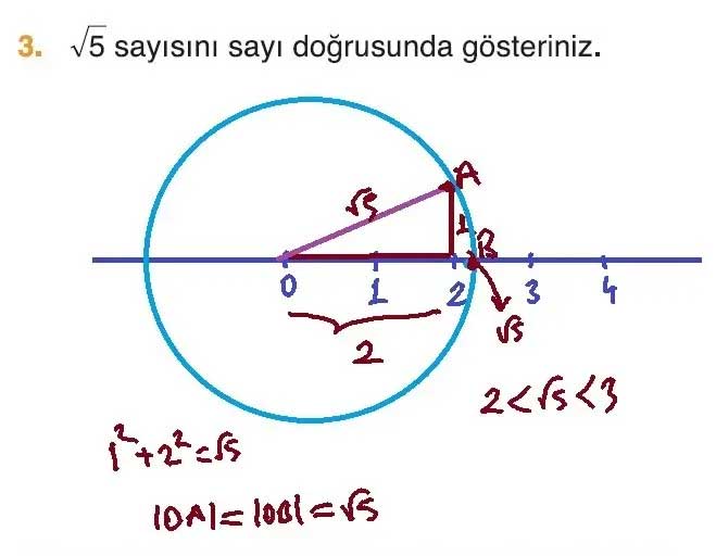 3- √5 sayısını sayı doğrusunda gösteriniz.
