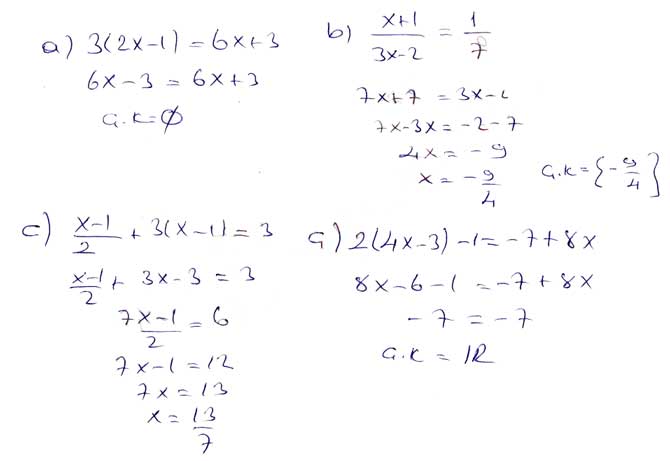 ç) 2 . (4x - 3) - 1 = -7 + 8x