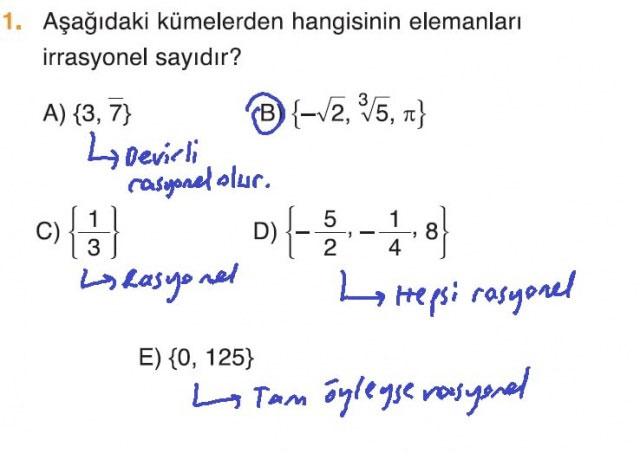 1. Aşağıdaki kümelerden hangisinin elemanları irrasyonel sayıdır?
