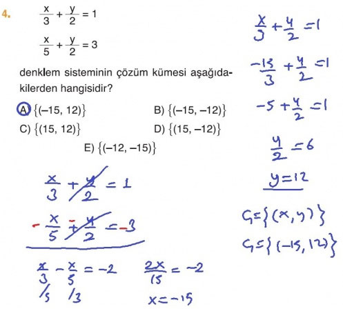 4. …….denklem sisteminin çözüm kümesi aşağıda- kilerden hangisidir?