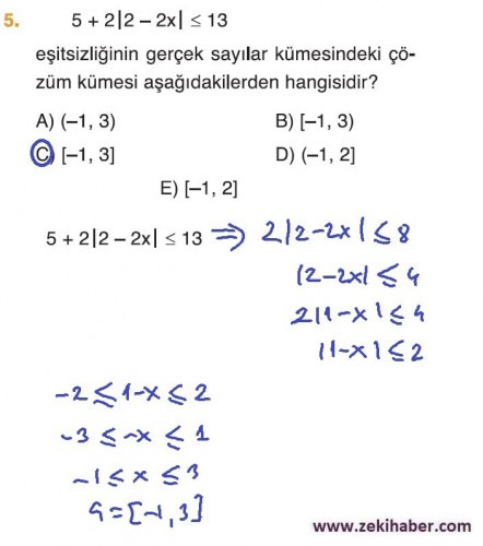 5. ……eşitsizliğinin gerçek sayılar kümesindeki çözüm kümesi aşağıdakilerden hangisidir?